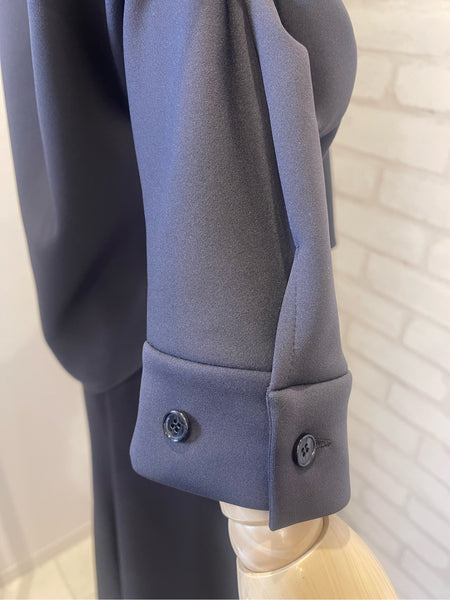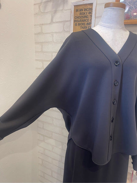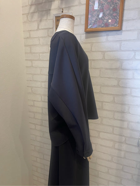 ドルマンスリーブで程よく抜け感を出し 裾にむかってスッキリ見えするデザインです