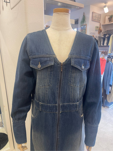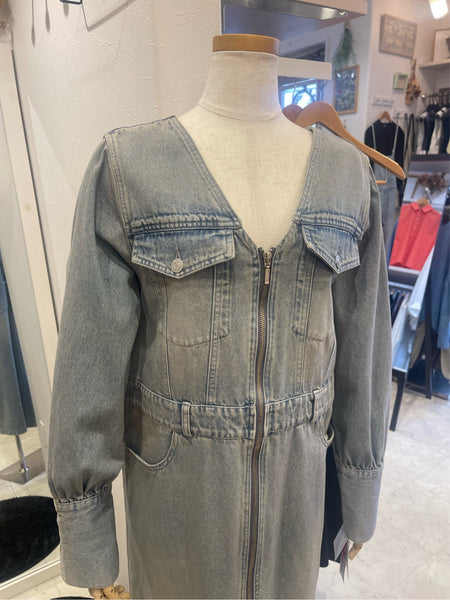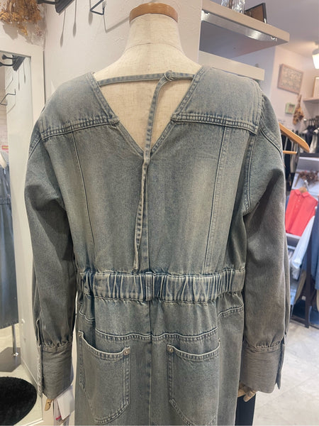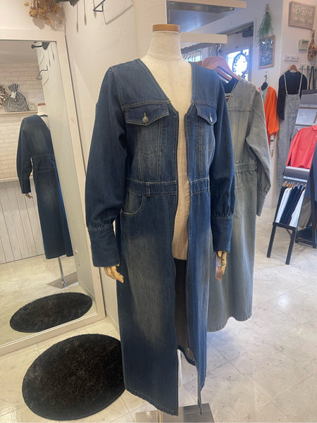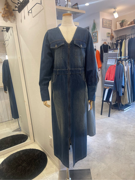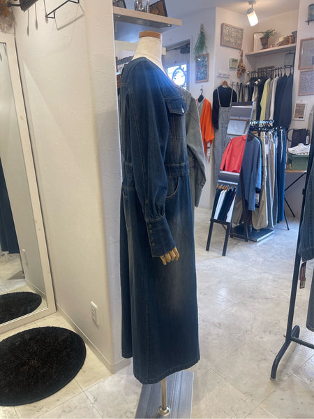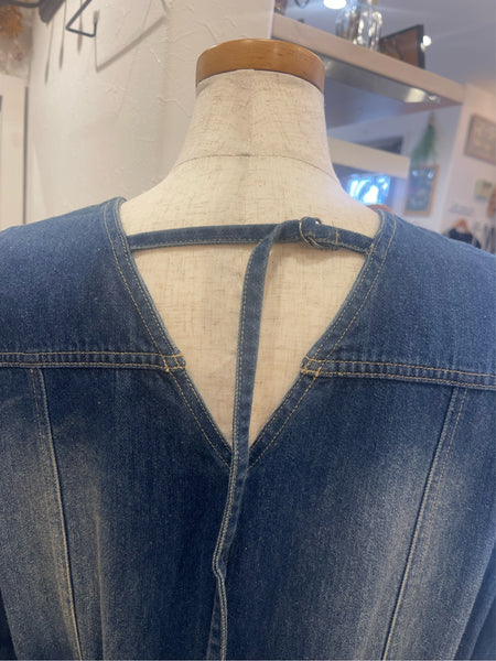 コットン100%の生地を使い デニムのカジュアルさとワンピースの女性らしさを併せ持つ