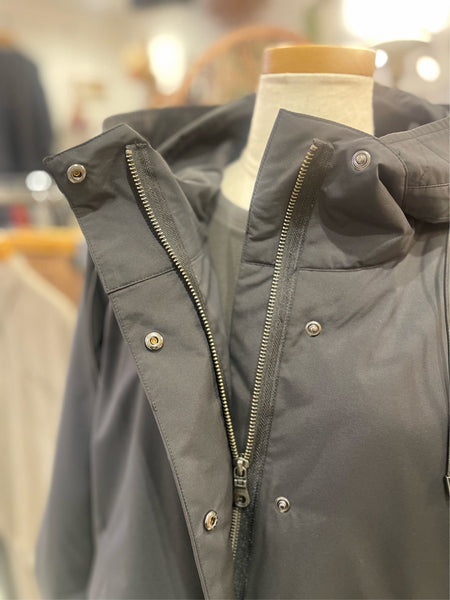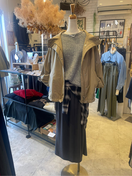 少しAラインよりのシルエットですが裾にあるドロストコードを絞っていただく事で